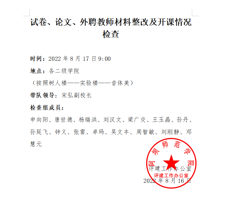 关于试卷、论文、外聘教师材料整改及开课情况检查的通知