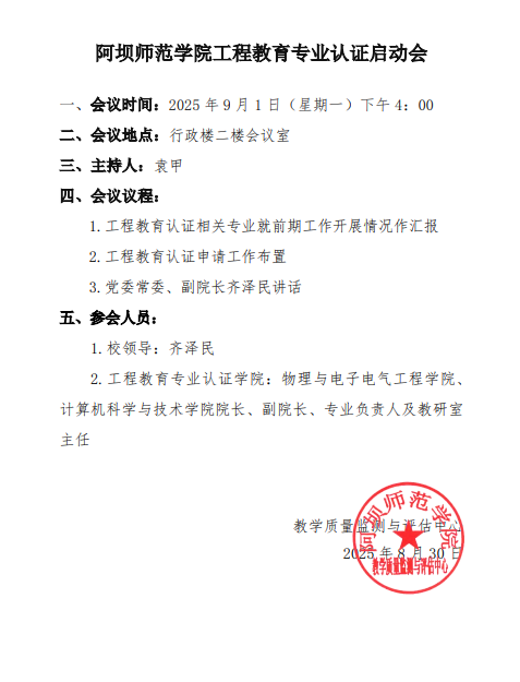 关于召开阿坝师范学院工程教育专业认证启动会的通知