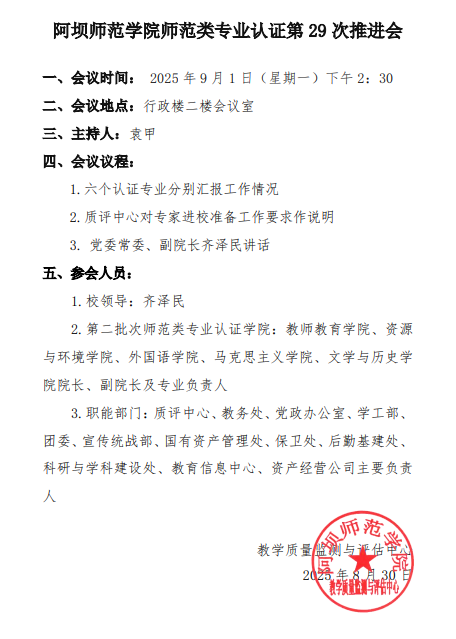 关于召开阿坝师范学院师范类专业认证第29次推进会的通知