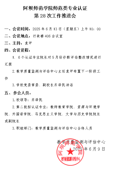 关于召开阿坝师范学院师范类专业认证第28次工作推进会的通知