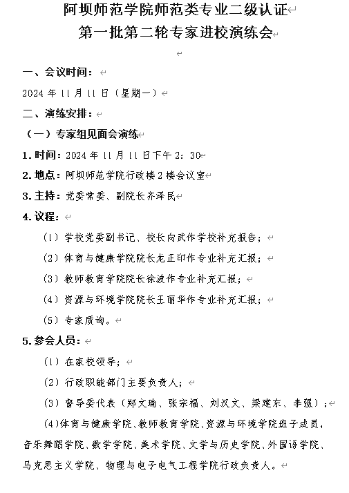 关于召开阿坝师范学院师范类专业二级认证 第一批第二轮专家进校演练会的通知