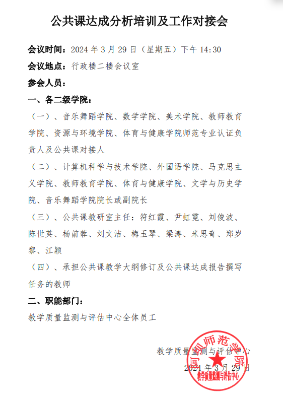 关于召开公共课达成分析培训及工作对接会的通知