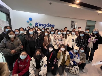 11月7日14:30,我院2022级学生到达金蝶软件(中国)有限公司成都分公司。公司培训部苏女士为大家介绍金蝶公司基本情况和发展历程。然后带领同学们参观公司办公环境,并为大家讲述专业规划。