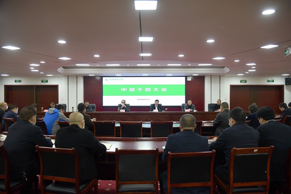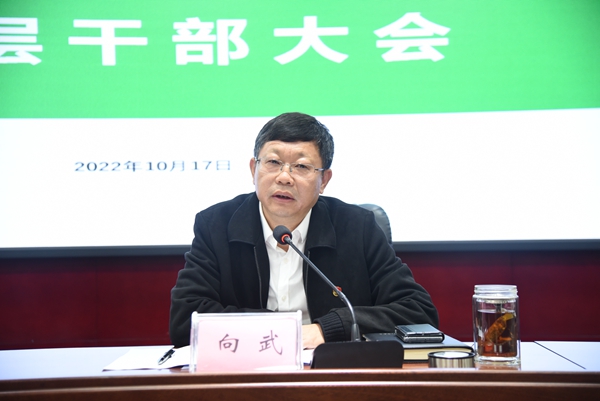 【本网讯】为进一步激励中层干部增强做好本科教学合格评估工作的积极性和使命感,为迎评工作营造良好氛围,确保本科教学工作合格评估顺利开展,我校于2022年10月17日8:30在行政楼2楼会议室召开中层干部大会。党委书记吴昊,党委副书记、校长向武,党委副书记孙建平,党委常委、副校长马昌威,党委常委、副校长、工会主席宋弘,党委常委、副校长齐泽民,学校全体中层干部参加本次会议。会议由向武主持。