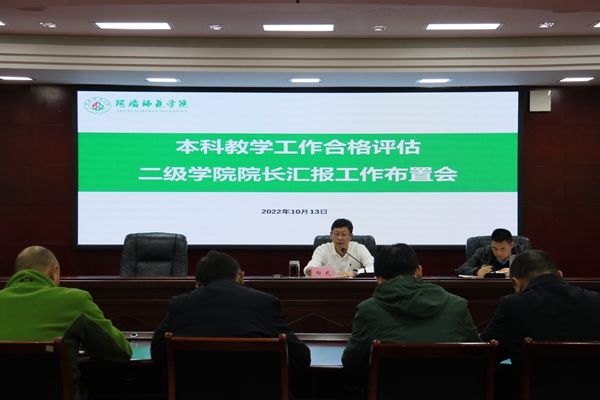 此次本科教学工作合格评估二级学院院长汇报工作布置会,要求各二级学院院长结合会议内容,将工作落实和督促到位,做到分工明确。同时要发动所有老师,对学校本科教学合格评估工作存在的问题进行深入分析,提出解决办法,不断完善相关准备工作,以推进我校本科教学合格评估工作顺利通过。