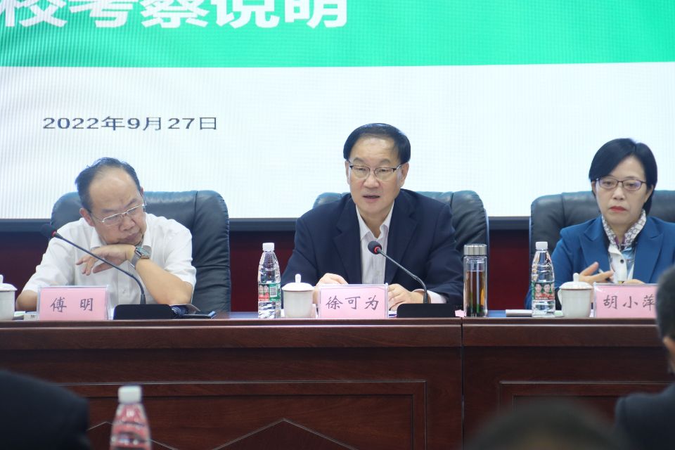 徐可为代表专家组就省级评估现场考查工作做四点简要说明:一是深刻认识合格评估的目的和意义。重点考察学校基本办学条件、基本教学管理和基本教学质量,学校服务地方经济社会发展的能力和应用型人才培养的能力,学校教学改革和内部质量保障体系建设和运行情况;二是关注合格评估指标体系调整。2018年1月,教育部教育督导局对合格评估部分评估指标进行了调整。学校要进一步理解合格评估指标体系的内涵,将合格评估作为促进学校发展的重要契机,进一步改善办学条件、规范教学管理,加快质量保障体系建设,全面提升人才培养质量;三是准确把握合格评估的新要求。2021年12月,国务院教育督导委员会办公室印发《关于做好2022年普通高等学校本科教学工作合格评估的通知》(国教督办函[2021]82号),更加强化社会监督,更加强调材料和数据的真实性,进一步强化国务院教育督导委员会办公室和省级教育行政部门对学校评估材料的审核;四是本次省级评估的工作方式。在评估期间,专家组将完全按照正式评估的流程,通过听课看课、走访、考察、深度访谈、抽查试卷和毕业论文以及相关资料,到实习基地、用人单位走访考察等形式,全面考察7个一级指标、20个二级指标、39个观测点的达标情况。徐可为强调,希望全体师生员工以平常心、正常态配合工作;希望学校实事求是配合专家开展工作,同时做好疫情防控工作。专家组将帮助学校总结积累的办学经验与亮点,查找存在的主要问题,提出改进工作的意见和建议,分享管理与评估经验,助推学校迎评促建工作做得更扎实、更细致、更周全。