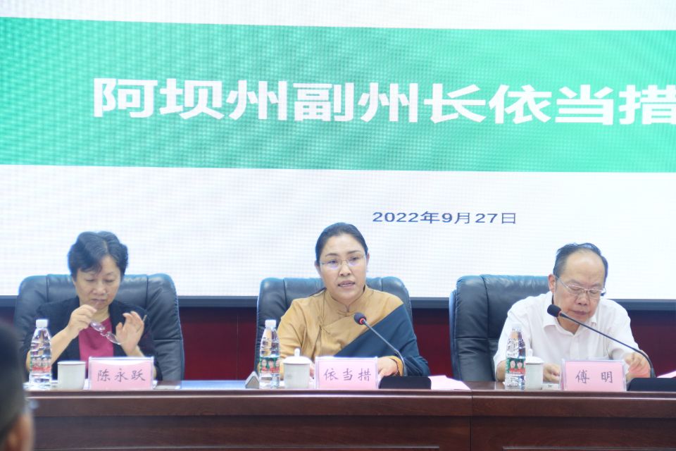 依当措谈到,专家组莅临阿坝师范学院检查评估工作,是对学校的全面检查和指导,是对学校办学理念的深化、教育质量的提高、管理水平的提升,也是对阿坝民族地区高等教育的关怀和帮助。在此,对各位专家的到来表示热烈地欢迎,向长期以来关心和支持阿坝民族地区教育事业发展的各位领导和专家表示衷心地感谢。阿坝师范学院树立“为党育人、为国育才”和“重内涵、强质量、创特色、铸精品”的办学理念,坚持“培养造就堪当时代重任的接班人”的思路,牢记“扎根民族地区办大学”的使命,积极开展交流互动,在优化办学条件、推进教学改革、加大人才培养、深化校地合作等方面取得了显著成效,培养了一大批留在阿坝、建设阿坝、奉献阿坝的高素质应用型人才。依当措强调,希望学校以这次评估检查为契机,积极学习,全力配合,查漏洞、补短板、强弱项、抓整改、打好基础,努力将学校建设成为民族地区师资培养的摇篮、民族文化传承的基地、民族团结进步的阵地。