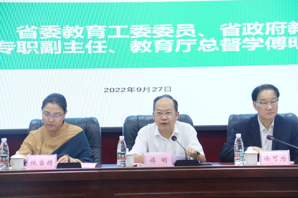 徐可为首先介绍出席见面会的省教育厅、省教育评估院、阿坝州人民政府领导、省级评估专家组全体成员以及与会人员。