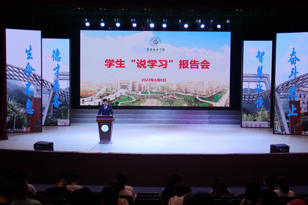 【本网讯】为深入推进评建工作,培育优良学风,提升学生自主学习能力,根据《阿坝师范学院关于评建工作“九说”活动实施方案》,2022年6月8日14:30,我校于南苑剧场举办学生“说学习”报告会。学校党委常委、副校长甲任,发展规划处、评建办、教务处、学生工作部、团委等相关职能部门负责人,各二级学院党委书记、院长、全体辅导员以及学生代表参加报告会。汇报会由学生干部李行主持。