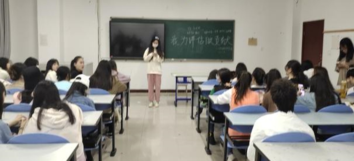 2021级9个班,共158人,各班于5月8日20时在美术学院303教室召开班会。积极发扬党员、预备党员先锋模范带头作用,带头说学习。由辅导员泽仁华珍讲述评估知识,9班党员同学魏可、胡蓓、舒磊,预备党员袁鑫带头说学习。相互分享学习经验,使学生养成自主学习和终身学习的良好习惯,达到学生乐学、勤学、会学、学成的目的。