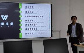 首先,教研室每位教师对自己所承担的专业课程围绕以下几个方面展开说课:课程对人才培养目标、毕业要求的支持度;课程在培养方案课程体系中的定位(特点、类别、课程性质等);课程OBE教学改革实施情况;课程思政实施情况;课程教学设计观摩;课程资源建设情况;课程教学方法与手段的创新;课程目标达成情况和持续改进机制的建立;存在的问题及对策。
