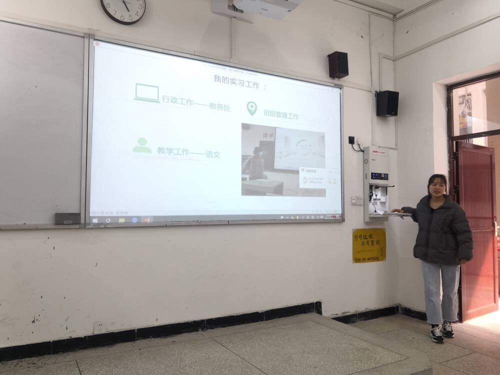 会议伊始,孙芸菀老师介绍本次实习总结分享主要流程和参会人员,欢迎了各位老师和同学们的到来。孙苑菀老师总结了本次实习的方案制定、实习基地考察等,接着邀请2018级优秀实习生代表分享自己的实习经历。