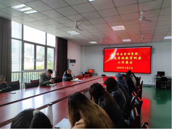 【本网讯】3月2日下午,经管与管理学院(以下简称“经管学院”)在学院会议室C104召开2021-2022学年第2学期教学工作例会。学院党总支书记薛国喜同志,副院长李清茂教授,全体教师参加此次会议。会议主要围绕学校2021-2022学年第2学期第一次教学例会工作会议内容部署学院新学期教学工作开展。
