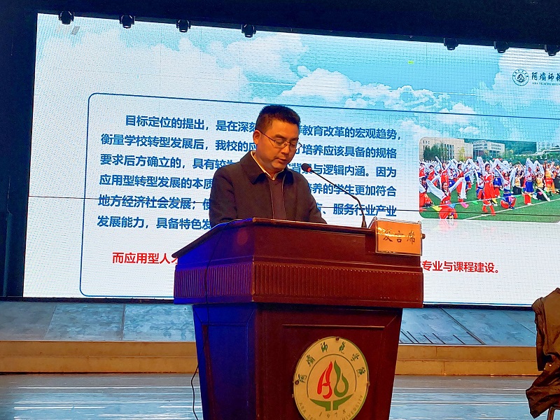 党委常委、副校长毛英作《应用型人才培养导向的专业课程建设与质量保障》主题讲话。毛英讲到,学校构建应用型人才培养模式,推动产教融合改革,加强专业与课程体系建设,在课程与教学实施方面开展“课程思政”改革、重视资源建设、修订课程大纲、强化通识课程、严选马工程教材、改革课堂教学、狠抓实验教学、拓展实习基地、开展社会实践、规范毕业论文,健全质量保障与监控体系,取得了良好的人才培养成效。