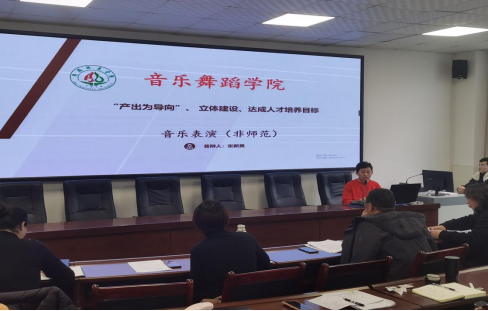 接下来由音乐学教研室主任袁文杰、音乐表演教研室主任张新昊分别对“教研”活动进行报告。音乐学教研室主任袁文杰从“围绕人才培养目标,强化教学科研工作”中提出四方面阐述。一是明确培养目标,架构课程体系;二是理思想强举措,筑牢教学成果;三是把握专业特色、推进教学改革;四是对标解决问题,提神质量发展。音乐表演教研室主任张新昊从“产出为导向,立体建设,达成人才培养目标”中提出三方面阐述。一是教研活动。二是课堂、实践、考核的改革。三是下一步的方向。