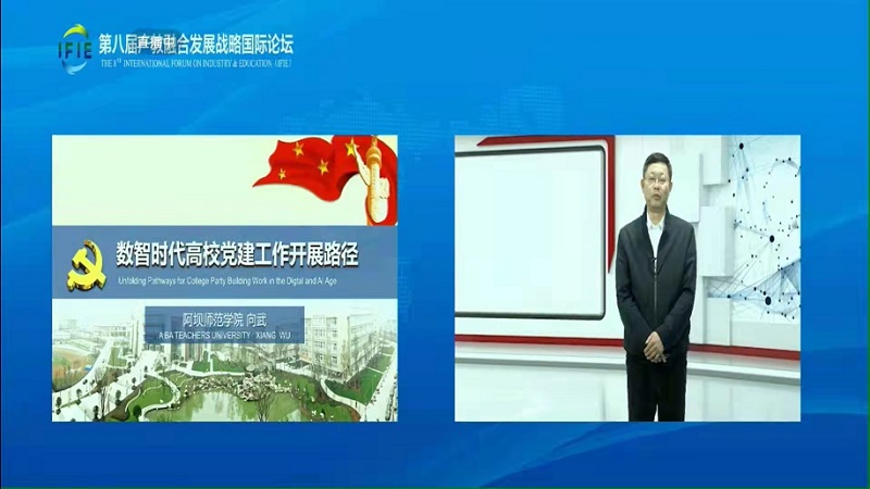 【本网讯】11月25日下午,阿坝师范学院党委副书记、校长向武参加第八届产教融和发展战略国际论坛。在分论坛二“素质治理:赋能高质量教育体系构建”中,向武以《数智时代高校党建工作开展路径》为题,援引“数智治理驱动应用型高校创新融合发展”创新案例,就有关数智治理——赋能高质量教育体系构建作了专题报告,展示了近年来地方本科高校和行业企业在深化产教融合、建设高水平应用型大学方面的理论和实践成果, 完整、准确、全面贯彻了新发展理念。