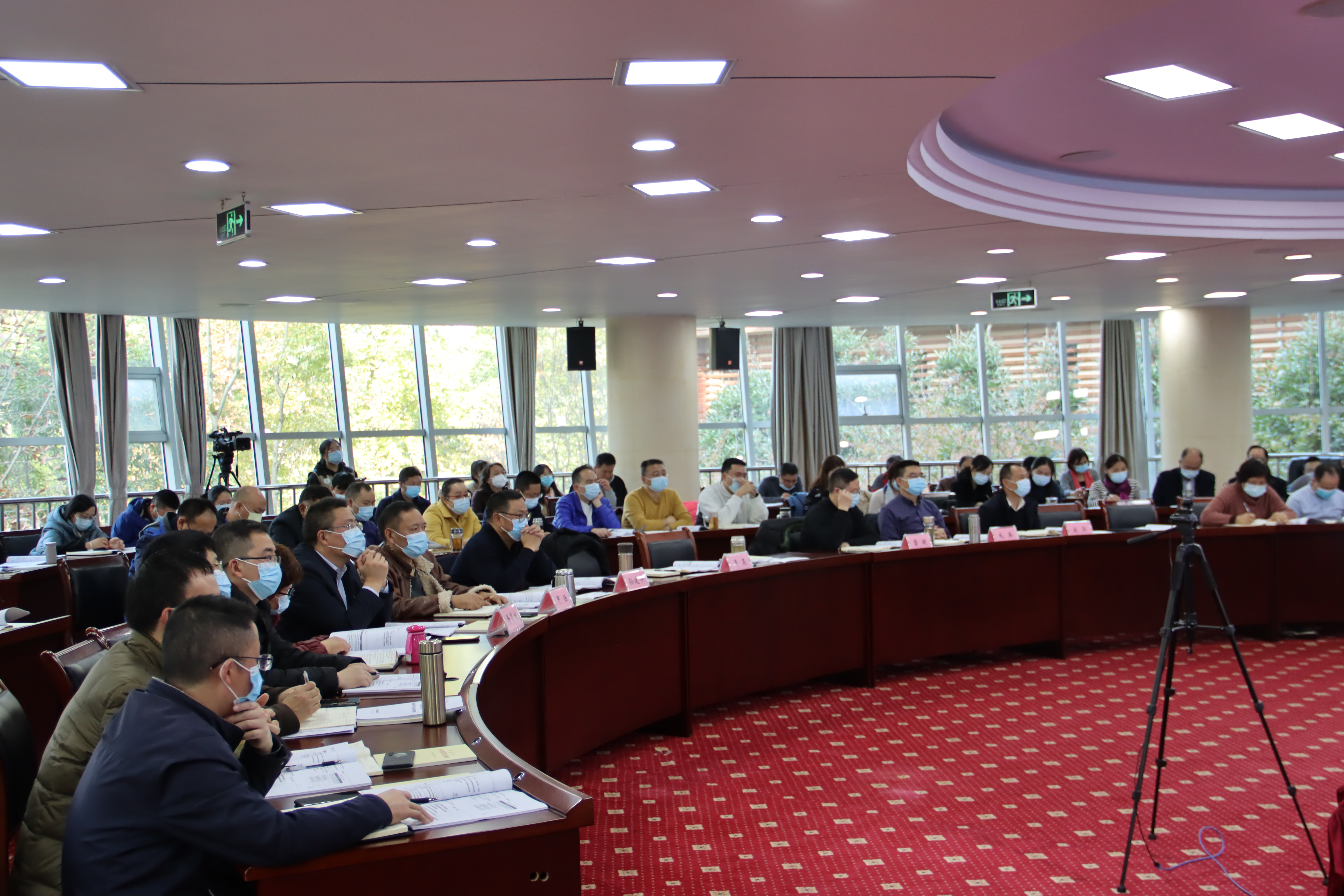 【本网讯】11月10日下午,我校分三个会场,以视频会的方式召开党委理论学习中心组(扩大)会议,学习《普通高等学校本科教学工作合格评估指标体系》。学校党委书记吴昊,党委副书记、校长向武,党委副书记、工会主席孙建平,省纪委监委驻校纪检监察组组长、学校党委副书记、纪委书记雷健,副校长甲任、毛英、马昌威、宋弘及全校科级以上干部参加了会议。会议由吴昊主持。