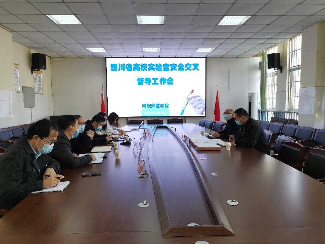 【本网讯】2021年11月10日,由四川省高校实验室安全交叉督导组派出的阿坝职业学院欧阳逸副处长、董小康副处长等代表莅临我校进行实验室安全交叉督导检查工作。上午11时许,双方在资环院实验楼A201会议室召开了督导工作会。我校国有资产管理处处长杨双华、邓文博老师、资源与环境学院党委副书记余列、副院长王丽华、副院长侯雨乐、实验室主任王仕英老师等实验室负责人参加了会议。会议由杨双华处长主持。