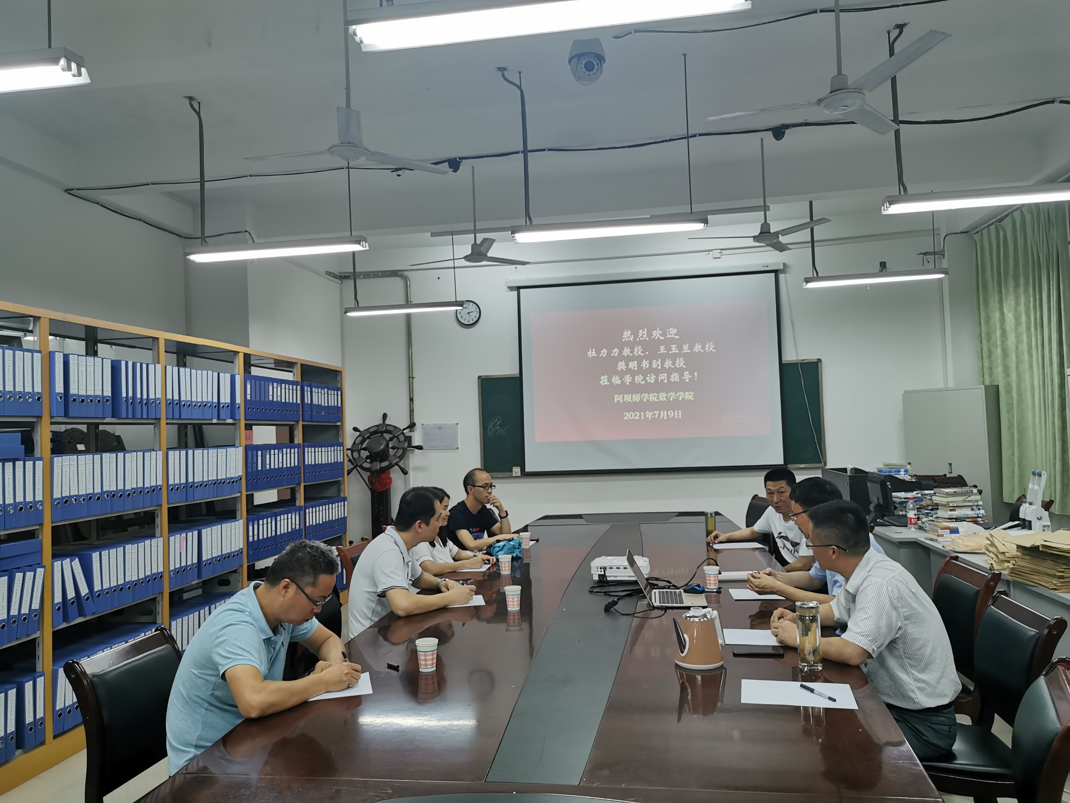 同时,王玉兰教授、樊明书副教授对我院的教育教学以及学生培养进行了指导和交流,对我院的本科教学合格评估工作、师资培养与锻炼等提出了许多良好的建议和宝贵意见。数学学院蒋自国教授、杨仕椿教授、董彪副教授、何波副研究员以及何璞老师等参加了研讨交流活动。