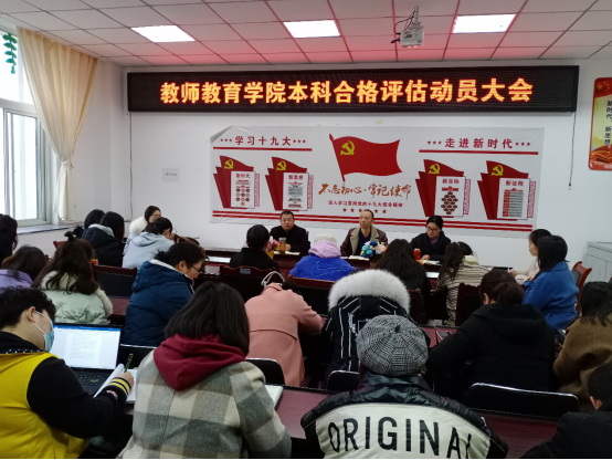 为鼓励全院教师积极参与本科教学合格评估,提高教师们对评估工作的理解与支持,教师教育学院在短期内召开了第二次教职工大会,领导班子就评估工作进行了宣讲动员,要求大家不计个人得失,提高政治站位,高度重视评估工作。