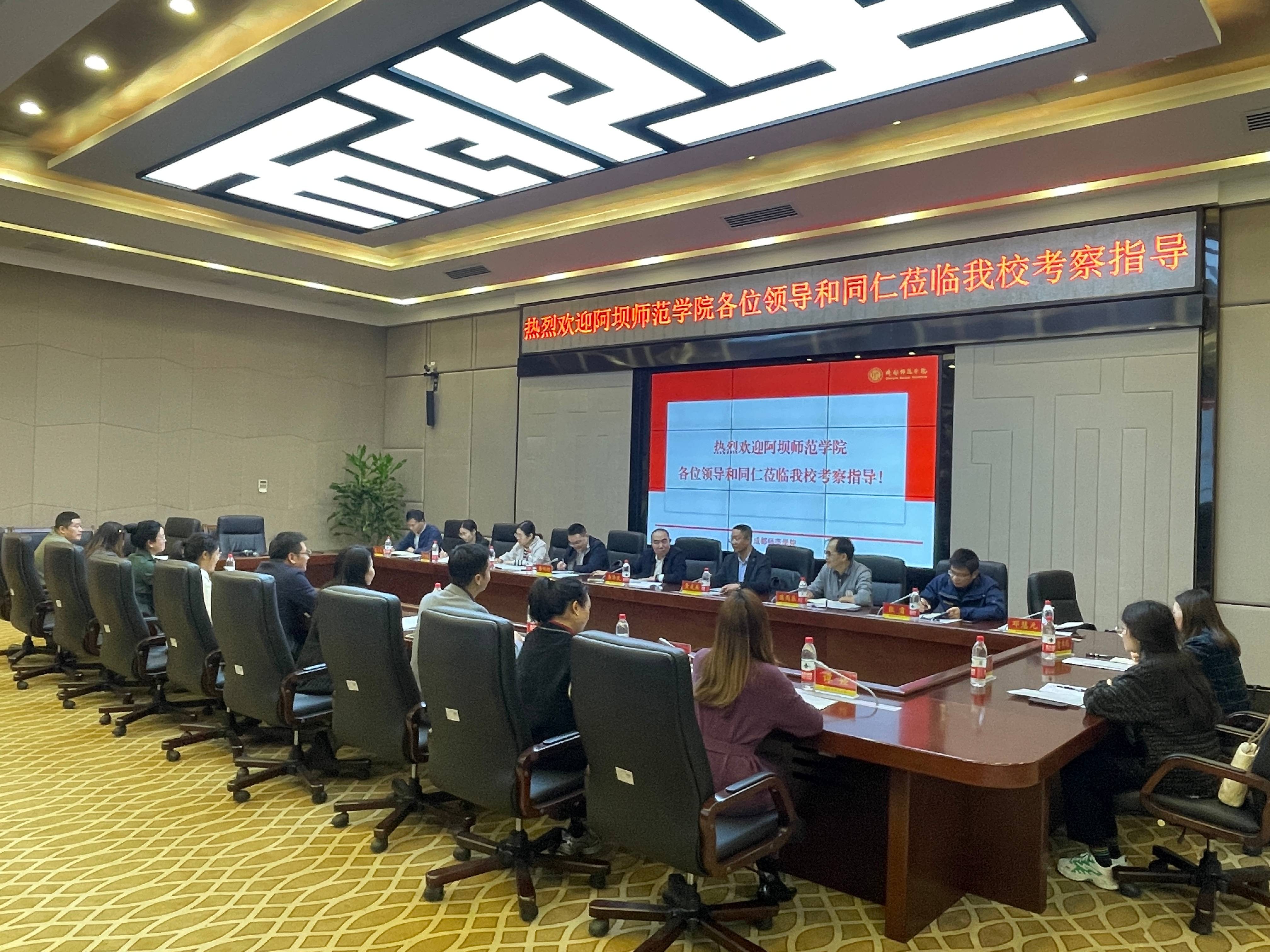 【本网讯】为推动教育教学改革、提高人才培养质量,促进学校高质量发展,阿坝师范学院党委常委、副校长齐泽民带领教务处相关工作人员于10月30日赴成都师范学院,就专业课程建设、教育教学改革等情况进行深入学习交流。