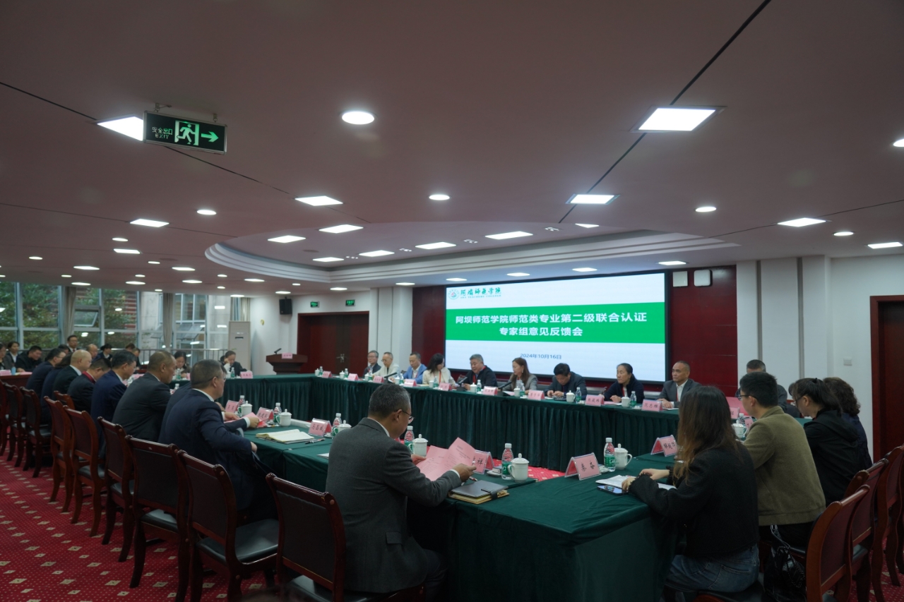 【本网讯】10月16日9:00,我校师范类专业第二级联合认证专家组意见反馈会在行政楼二楼会议室召开。联合认证专家组、四川省教育评估院;阿坝师范学院在校校领导出席会议。参加会议的还有学校相关职能部门和各二级学院主要负责人。此次会议由联合认证专家组组长、南京师范大学学报编辑部主任叶忠教授主持。