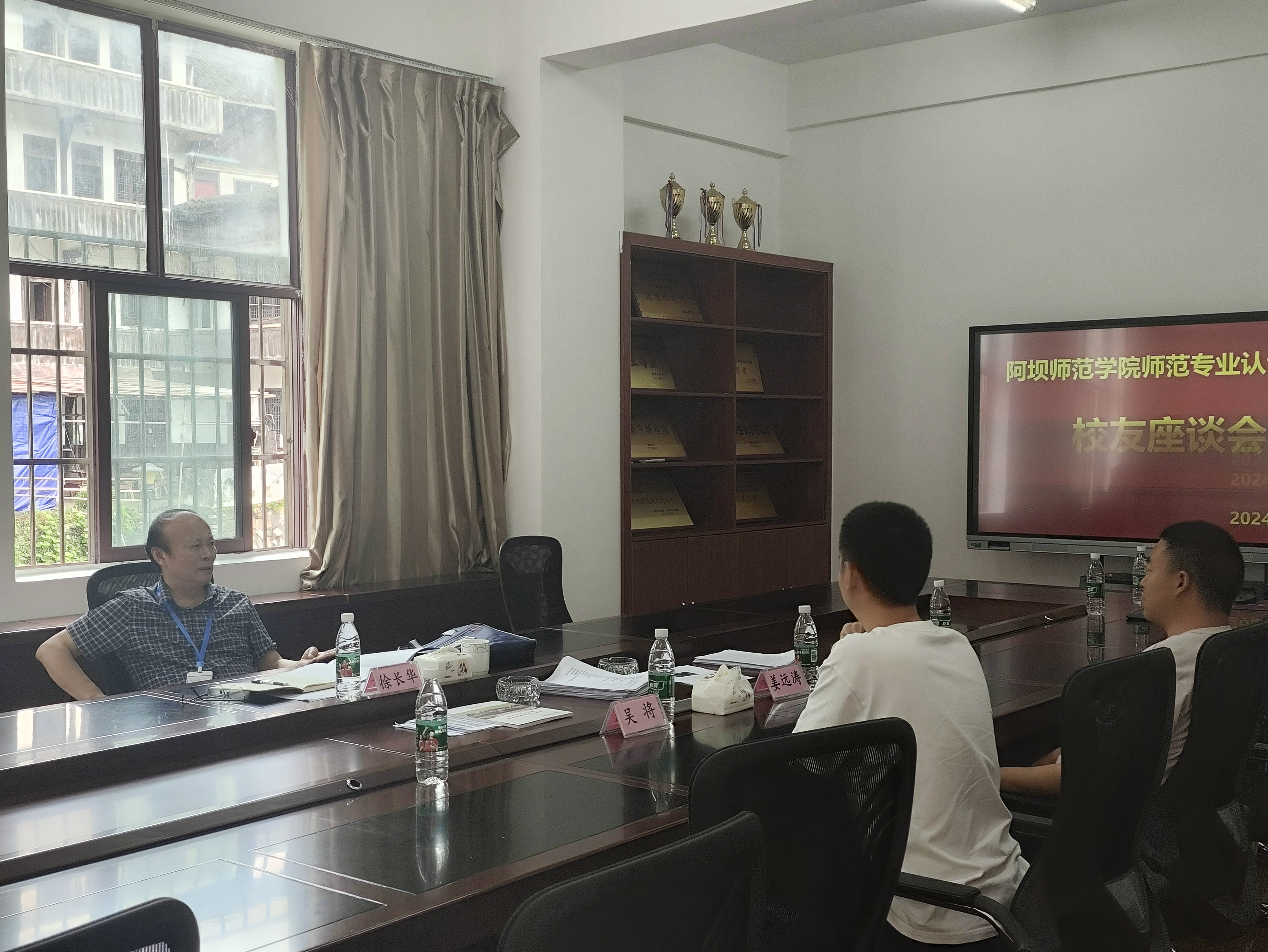 水磨中学座谈会上,水磨中学校长何勇详细介绍水磨中学基本情况及与阿坝师范学院校校合作相关情况。他表示,学校将进一步加深双方交流与沟通,实现合作共赢,更好地服务地方教育发展。数学与应用数学专业专家组成员、西昌市第一中学校长马庆国强调,合作育人着重突出如何培养师范生的师范教育能力以及班级管理能力,希望两校在此次师范专业认证工作中互通有无,取长补短,强化专业理论与实践课程的有效融合,进一步提升本科生的专业培养质量。校友座谈会上,美术学专业专家组成员、眉山市第一小学校长徐长华强调校友要积极助力母校各项教育事业,不断推动校企产学研合作,促成校地合作,贡献阿师人的智慧和力量。