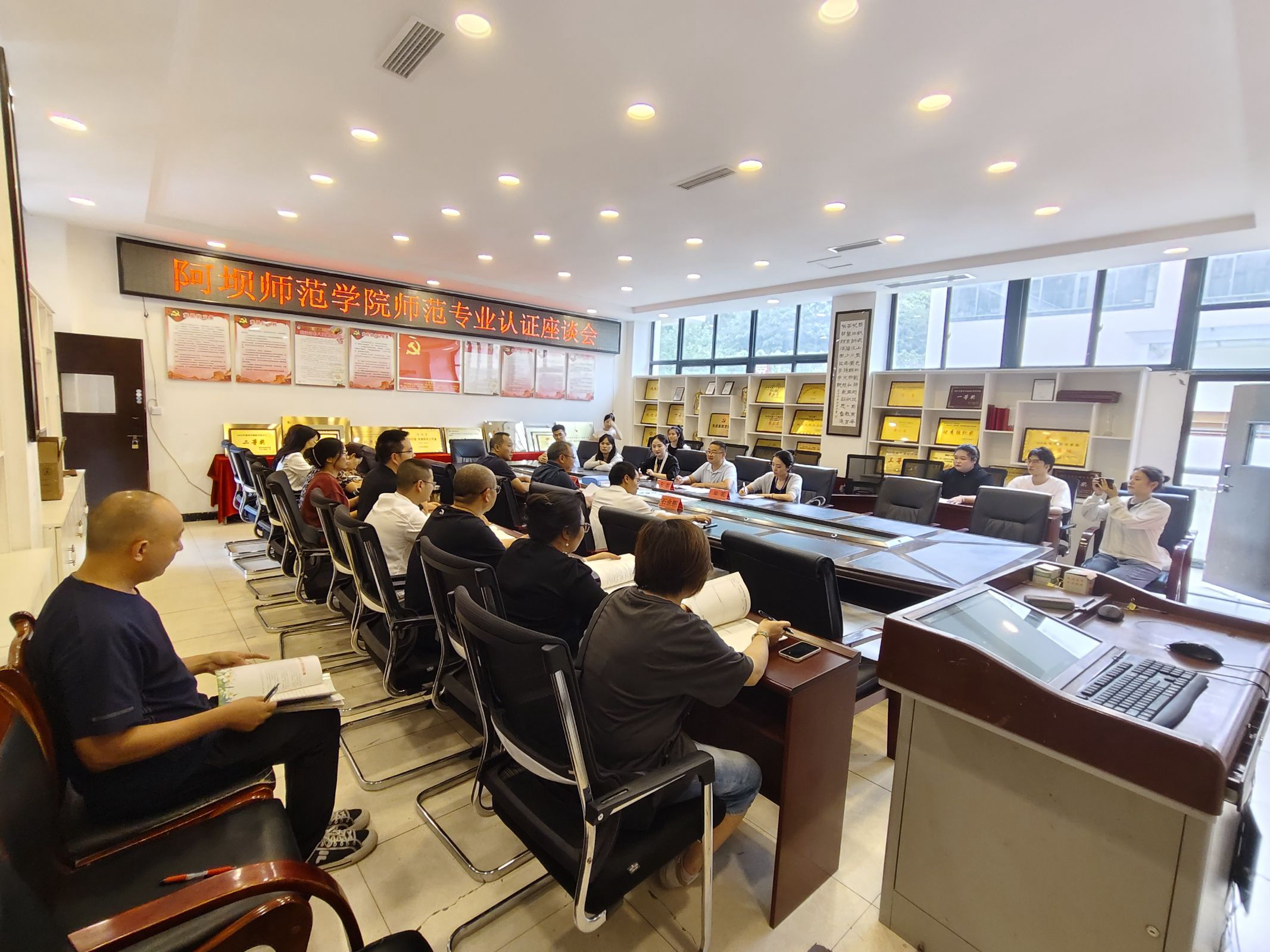 音乐学专业认证专家组组长、绵阳师范学院教学质量监控与评估中心副主任王吉春一行同音乐舞蹈学院领导班子及相关师生代表于音乐舞蹈学院510会议室召开座谈会。会议强调,要提高认识,强化责任。高度重视专业认证工作,梳理制定明确具体的各项工作实施方案;要迅速部署,扎实推进。充分学习和领悟认证要求,对标对表,高质量完成各项材料准备;要加强审核,做好预案。要建立完善的认证工作机制,重点环节做好应急预案,确保认证工作万无一失。会后,音乐学专业认证专家组就学校音乐学专业的课程设置、师资队伍、实践教学、学生就业等方面作详细询问,王吉春强调,要坚持“反向设计,正向施工”,聚焦人才培养各方面;要对照认证标准,认真进行教学材料准备,打磨教案和课件;要积极交流教学经验,不断提升教学水平;要完善支撑材料,为认证工作提供坚实后盾。