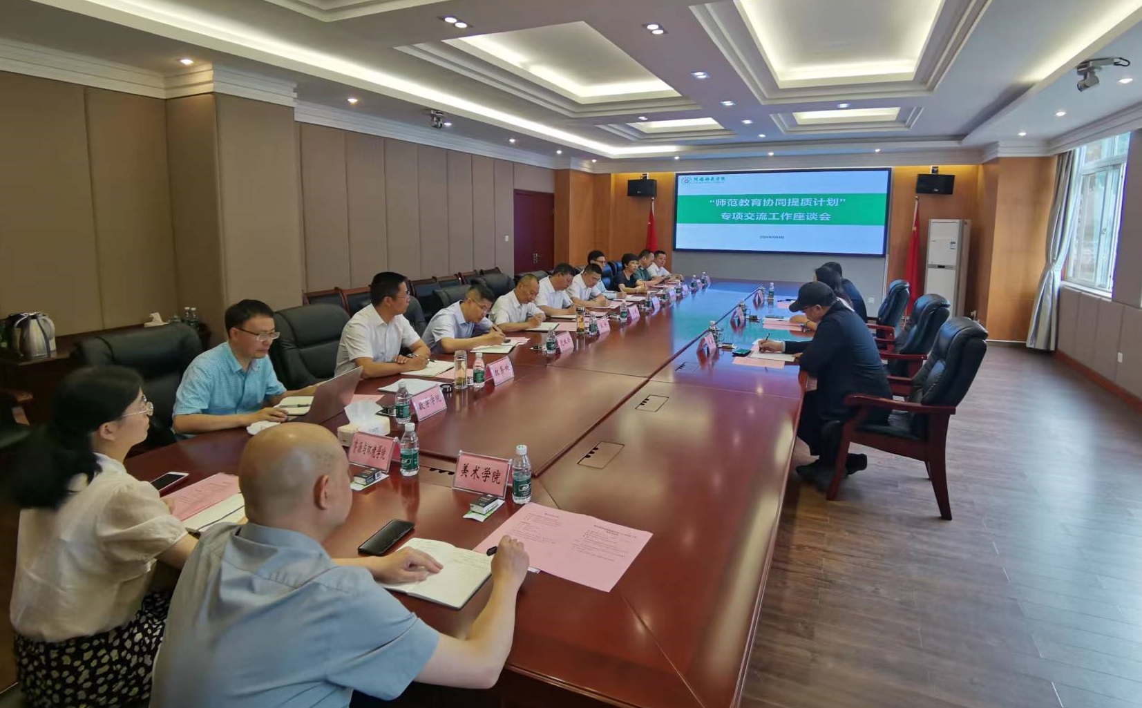 【本网讯】2024年7月4日上午9:00,“师范教育协同提质计划”专项工作交流座谈会在我校行政楼406会议室召开。北京师范大学强师工程办公室副主任徐书墨、北京师范大学艺术与传媒学院副院长甄巍、北京师范大学强师工程办公室干部张魁,我校党委副书记、校长向武,党委副书记毛英,党委常委、副校长宋弘以及有关职能部门、二级学院负责人出席会议。会议由毛英主持。