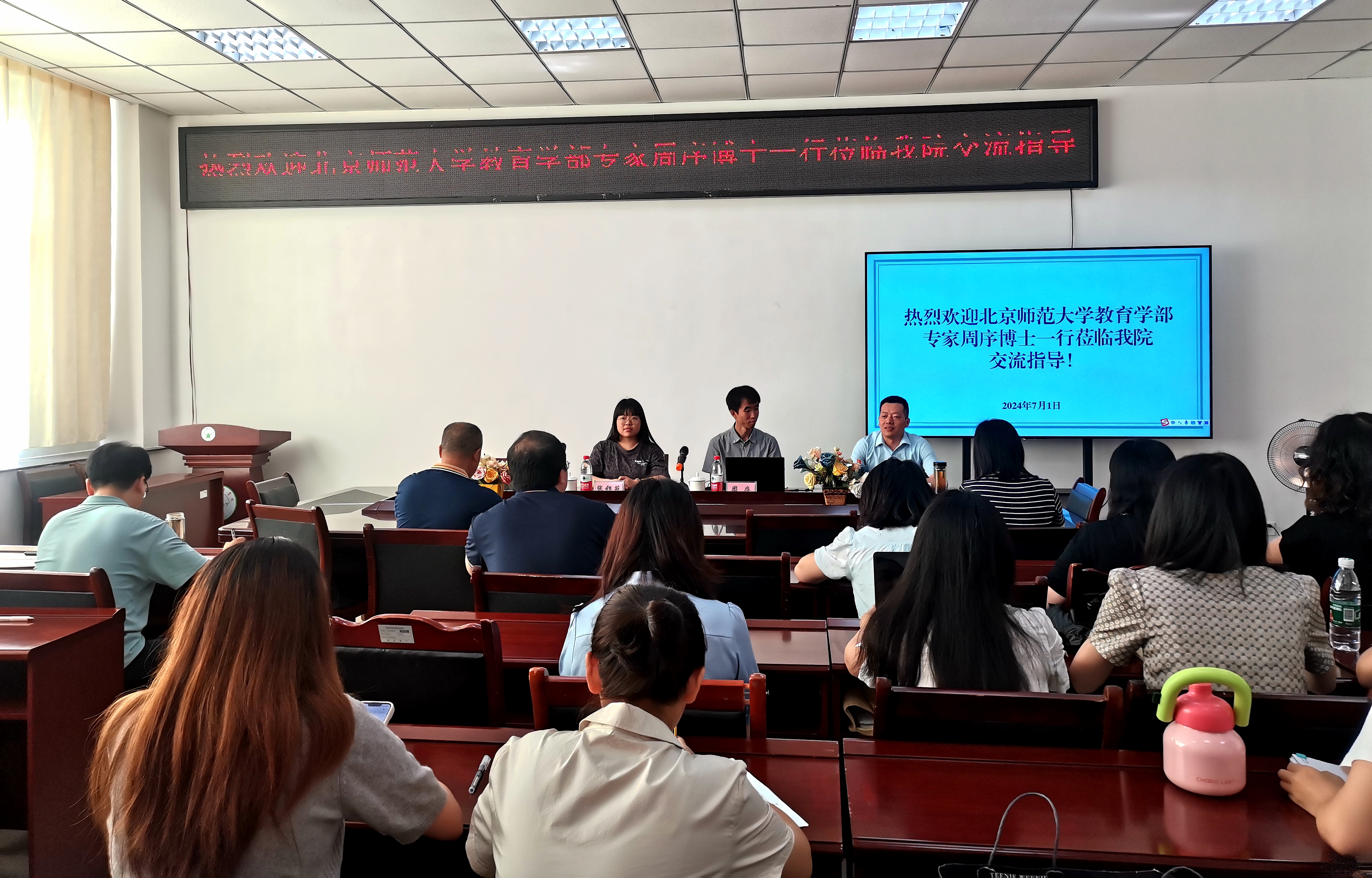 【教院讯】为进一步激发学院教师投身科研的热情,充分发挥教学科研在师范专业认证和硕士点建设工作中的重要作用,全面提升学院教师整体科研能力和学术论文写作水平,7月1日上午,教师教育学院在B305会议室举办学术论文写作专题讲座与交流座谈会。北京师范大学教育学部周序副教授及团队成员张钰苑受邀出席会议,专题讲座和交流座谈会由教师教育学院院长徐波主持,学院全体教师参加了会议。