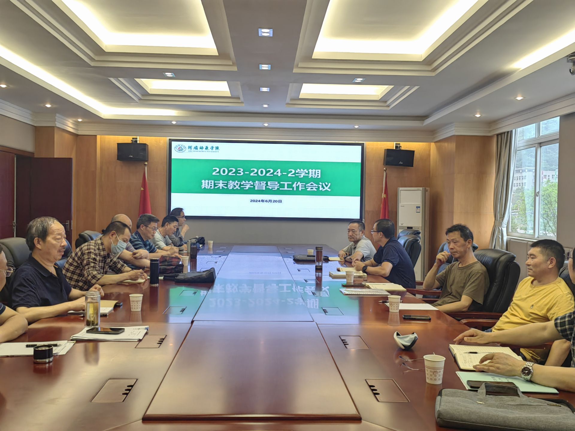 【本网讯】为进一步提高教学督导工作水平,加强学校教学质量保障体系建设,我校于2024年6月20日15:00在行政楼406会议室召开2023-2024-2学期期末督导工作会议。校级教学督导教师及教学质量监测与评估中心全体人员参加本次会议。教学质量监测与评估中心主任袁甲主持本次会议。