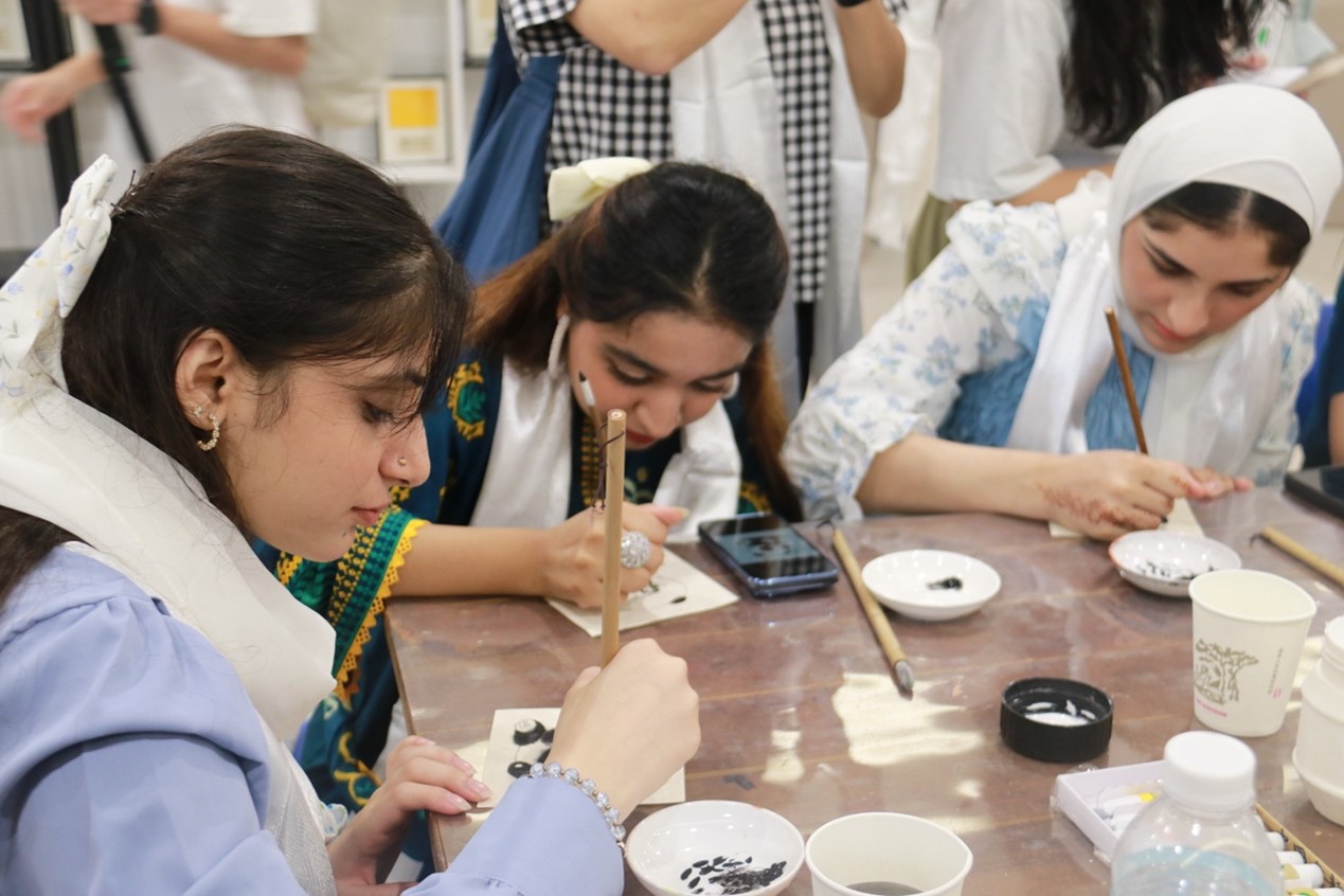 随后,在藏纸应用研究中心教师及学生团队的指导下,川港青年及巴基斯坦青年以藏纸为载体,绘制中国国宝大熊猫。