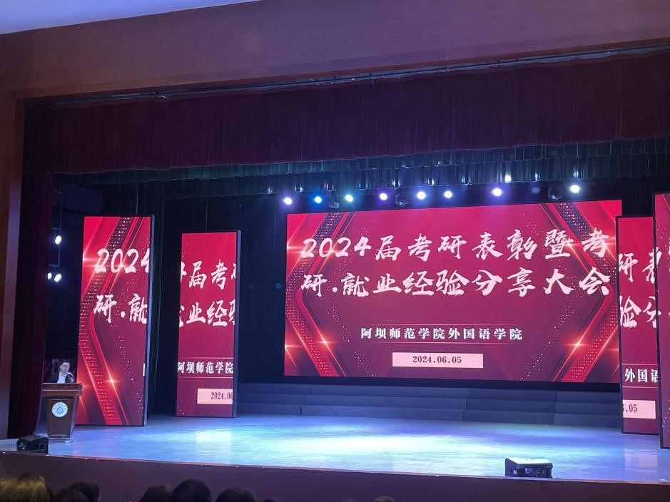 【本网讯】 为总结表彰考研工作,激励学子立志向学,2024年6月5日14:00,外国语学院于南苑剧场召开2024届考研经验分享暨表彰大会。参会人员有外国语学院党委书记张茂军,院长刘远志,党委副书记、纪委书记尹虹霓,团委副书记李柳,辅导员李明星,以及我院400余名学生。本次大会由刘远志院长主持。