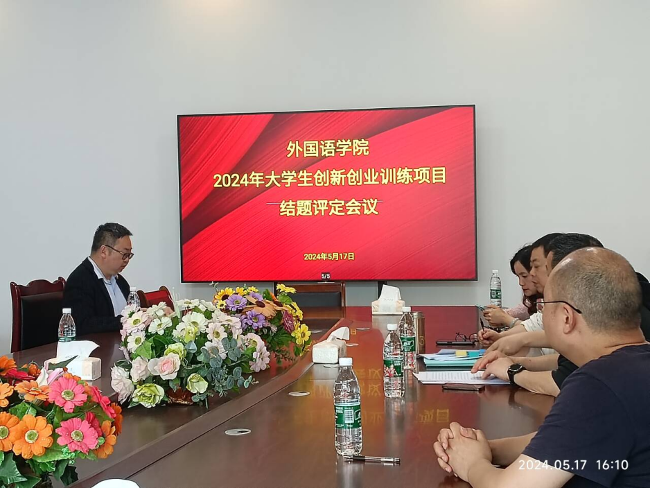 【本网讯】 2024年5月17日14:00,外国语学院于学院会议室召开2024年大学生创新创业训练计划项目结题评审会议。与会人员有外国语学院党委书记张茂军、院长刘远志、党委副书记尹虹霓、教学科研办公室主任卜庆立、专职思政辅导员李明星。