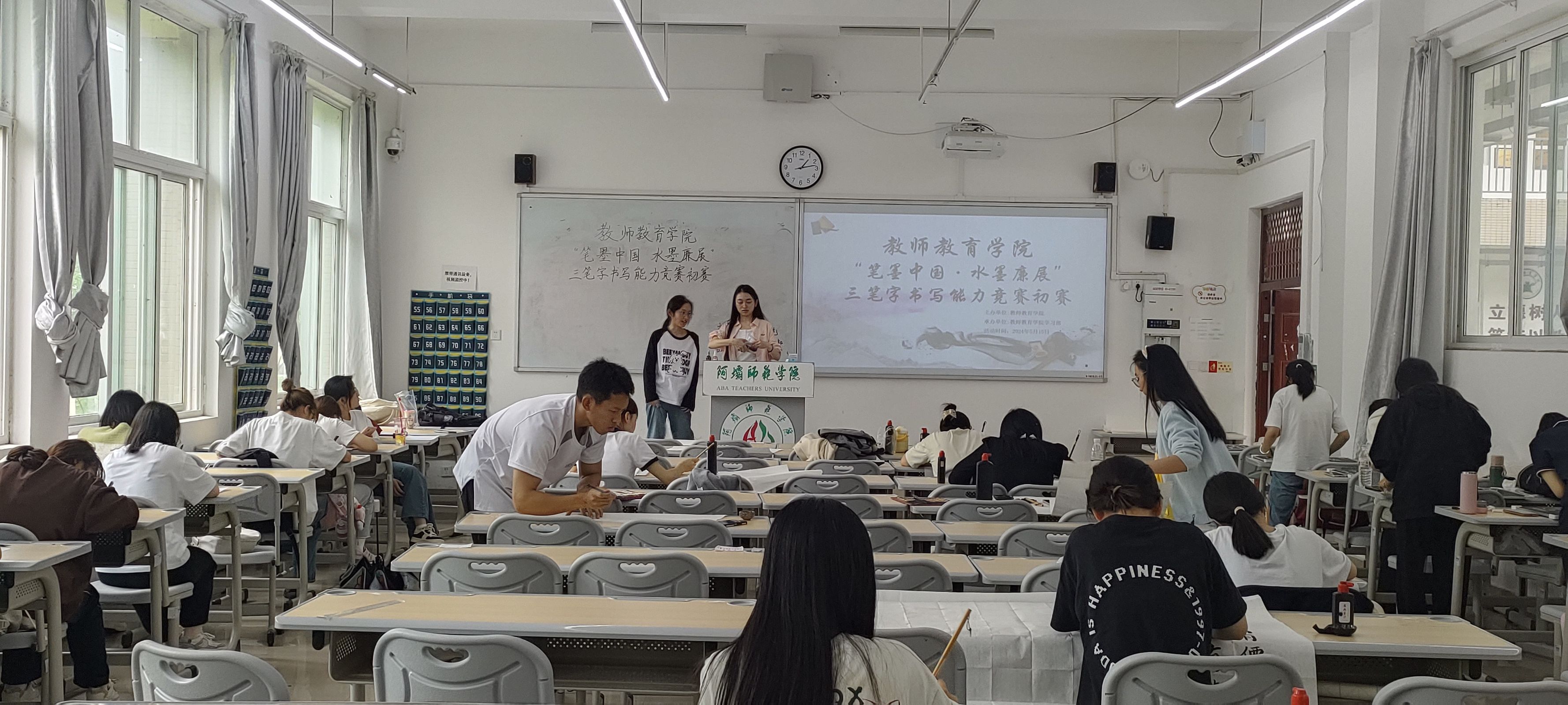 【教院讯】自信展师范技能风采,书写绘教院学子青春,为提高学院师范生书写基本功,全力迎接师范专业认证,2024年5月15日13:00教师教育学院于树人楼A302顺利开展“笔墨中国·水墨廉展”三笔字书写能力比赛。周玉文老师担任评委。