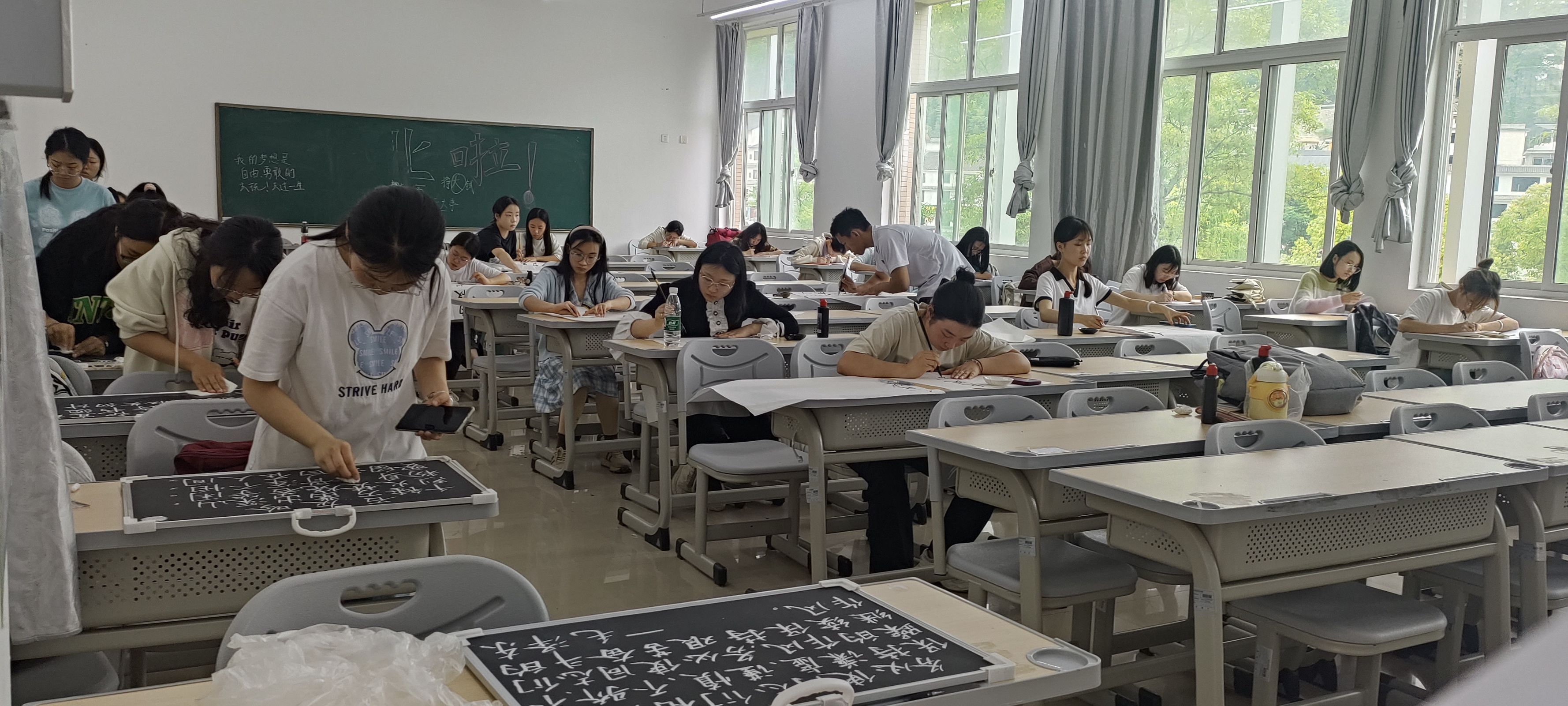 根据师范生在教育教学场景中书写的形式,比赛分为钢笔字、毛笔字以及粉笔字三个类别。比赛现场氛围热烈而严肃,同学们全神贯注地投入到书写之中,他们手持学院统一分发的纸张,根据比赛的主题,思绪飞扬,自由发挥着书写内容。每一位参赛选手的眼神中都透露出专注与执着,一笔一划都饱含着对书写的热爱与敬畏。大家满怀激情,以灵动的笔触在纸上舞动,力求以最好的状态写出自己最满意的作品。有的同学钢笔字刚劲有力,线条流畅;有的同学毛笔字龙飞凤舞,气势磅礴;还有的同学粉笔字工整规范,清新秀丽。每一幅作品都凝聚着同学们的心血与努力,展现着他们过硬的书写基本功。比赛在同学们的精彩表现中圆满结束。