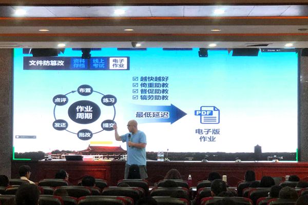 【本网讯】为深化教师对教育数字化的认识,提升教师队伍教学能力数字化,推动数字技术与教育教学深度融合,催生我校教育教学工作创新发展。5月18日,北京大学陈江教授应邀在我校学术报告厅为全校一线教师做专题讲座,并进行互动交流。教师发展中心负责人及来自教学一线的200余名教师参加。