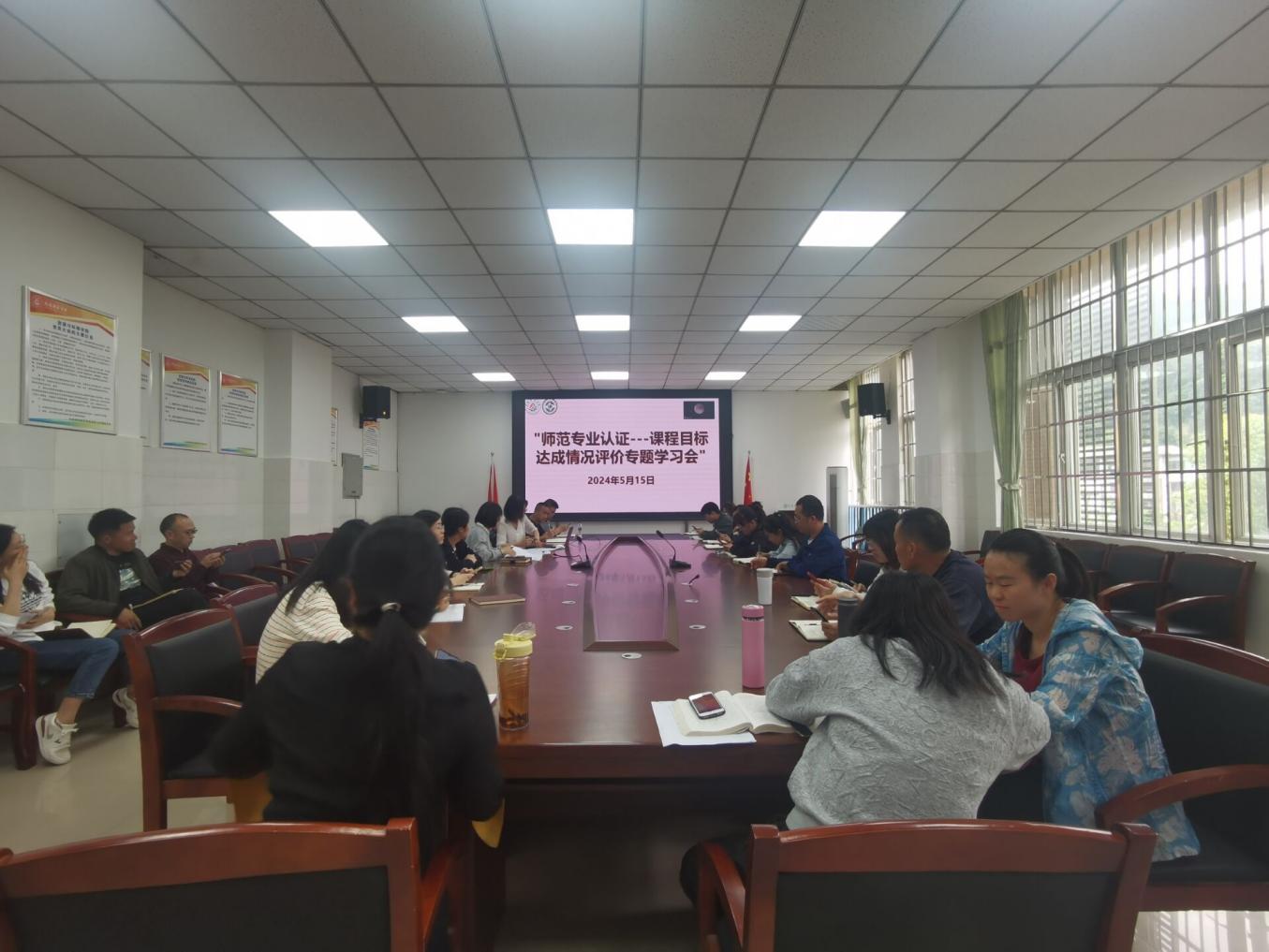 【本网讯】2024年5月15日下午2点,资源与环境学院积极响应号召,为进一步提升师范专业的教学质量和教育水平,组织了全院教师在实验楼A201参与“师范专业认证——课程目标达成情况评价”专题学习会。此次学习会旨在深入解读师范专业认证的相关要求,加强教师对课程目标达成情况的评价能力,为学院师范专业的持续发展和优化奠定坚实基础。