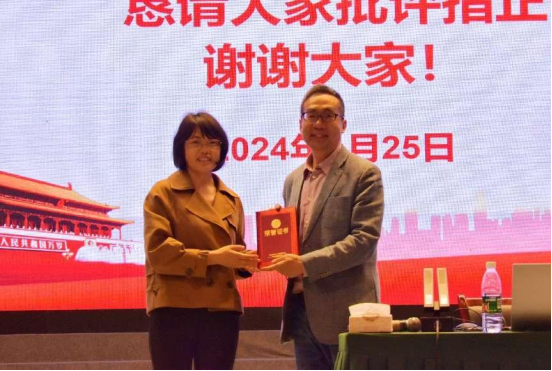 讲座结束之后,李益芬老师为张光奎老师颁发了荣誉证书表示感谢。最后,李老师指出对中考命题的把握与思考应是每位师范生的必备技能,这一技能的提升会使同学们在未来的教学岗位上更具竞争力。她强调思想政治教育专业的师范生应该更加勤奋学习,弥补自身教学能力上的不足,真正胜任中学政治教师的工作。