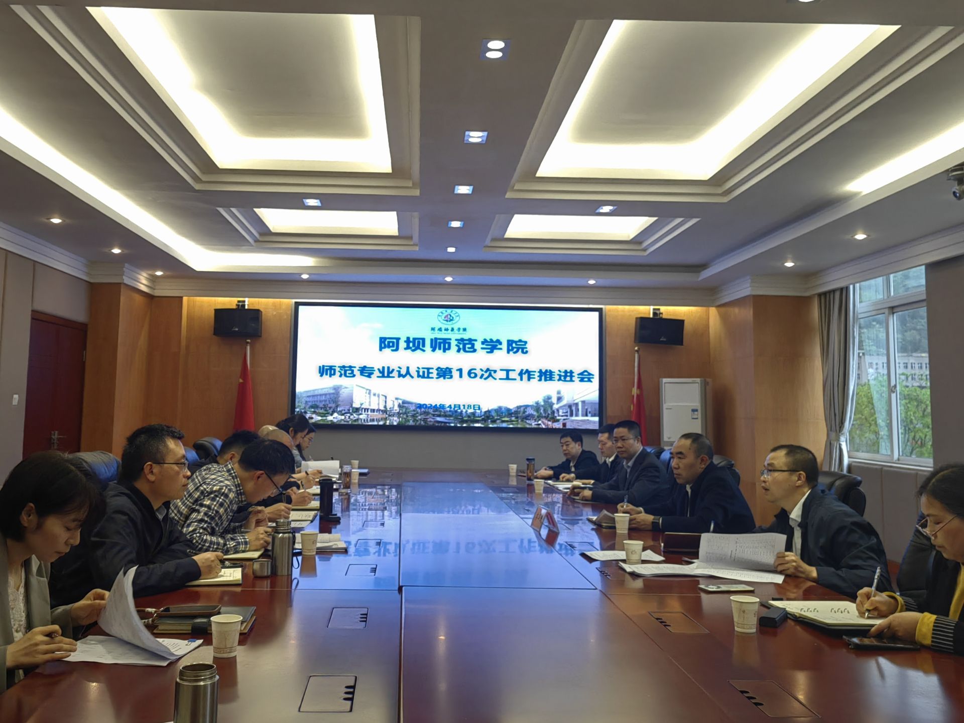 【本网讯】为全面推进学校师范类专业认证工作,提升专业人才培养质量,我校于2024年4月18日9:00在行政楼四楼会议室召开阿坝师范学院师范类专业认证第16次工作推进会。阿坝师范学院党委常委、副校长齐泽民教授、音乐舞蹈学院、数学学院、美术学院、教师教育学院、资源与环境学院、体育与健康学院、马克思主义学院、文学与历史学院、外国语学院、计算机科学与技术学院院长、教务处、学工部等部门主要负责人参加本次会议。教学质量监测与评估中心主任袁甲主持本次会议。