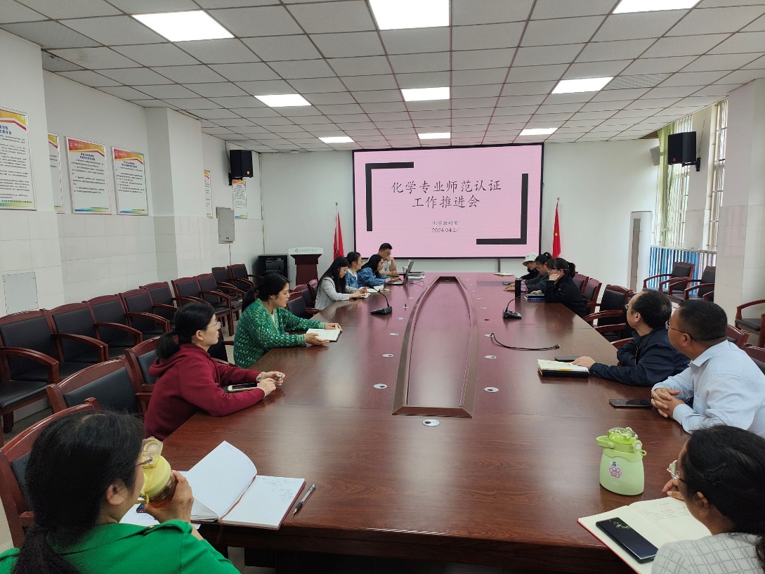 【本网讯】为提升师范专业教学水平,促进教学质量持续提高,2024年4月17日下午,我院化学专业组织召开了师范专业认证工作推进会,会议旨在全面部署师范专业认证工作。资源与环境学院副院长冯琳以及化学专业全体教师参加了此次会议。