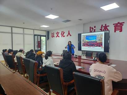首先,由牟剋蓉老师作分享交流。牟老师从学习成效与学习感悟两方面出发,在学习成效板块详细介绍了此次培训的理论知识,如团体排名项目的计算方式、不同项目的服装要求、裁判组的组成要素等。以及实操技巧,如排舞的成套组合、考核评分的细则、现场打分技巧等。在学习感悟板块,牟尅蓉老师认为参与培训不仅能复习已有知识,还能接触到前沿的知识和理念,拓宽视野,对相关领域有更深入的理解。因此,也激发了更强烈的学习动力,愿意持续不断提升自己。