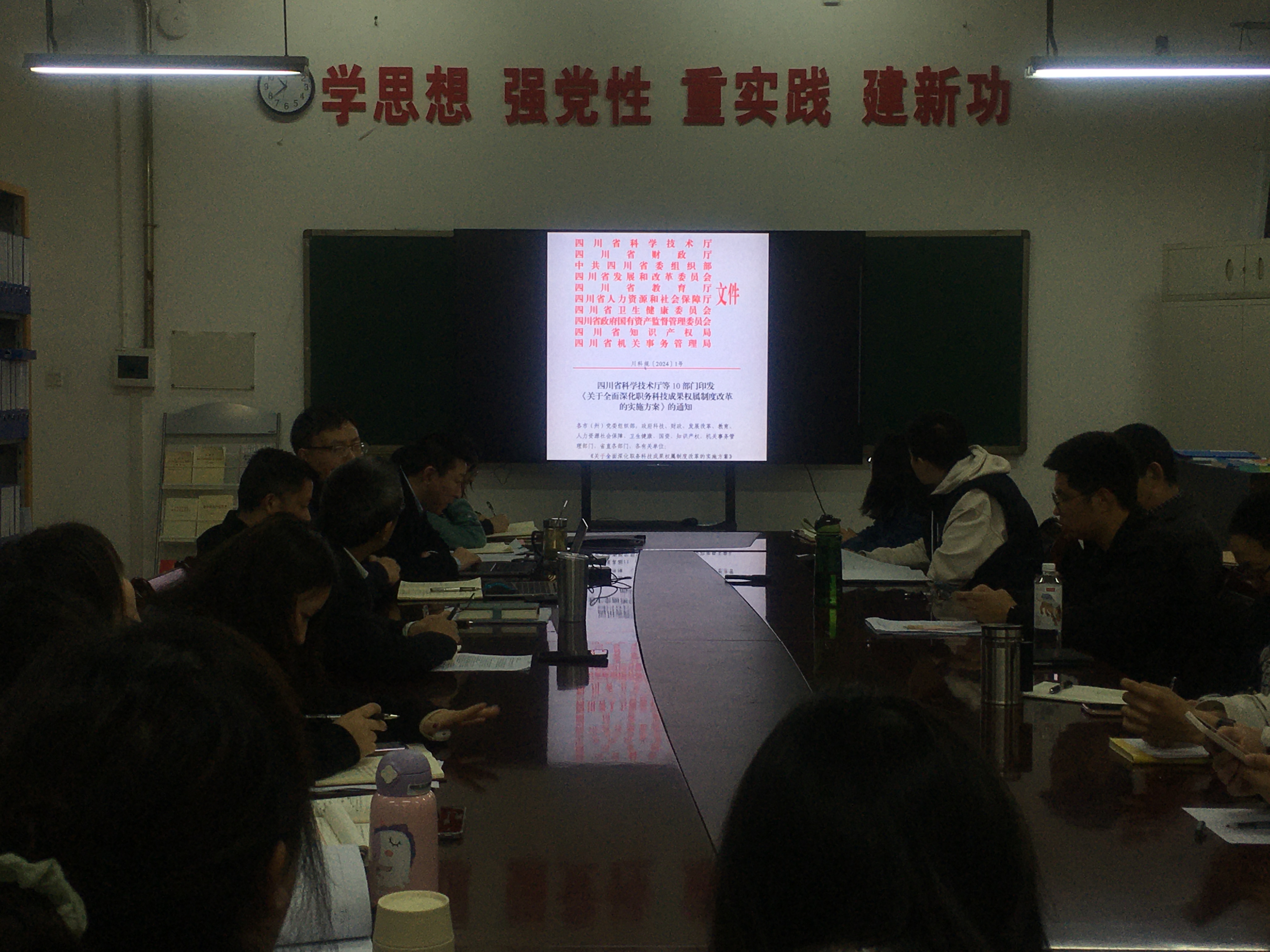会上,蒋书记首先强调了老师们在上课时注意自己的言行和教学工作纪律,并对授课教材、教参和教学读物的排查工作进行了安排,老师们按照要求自行排查。赵伟老师对学院相关学科竞赛的组建工作进行安排,鼓励全体教师要积极指导学科竞赛。何波老师带领全体教师学习了《关于全面深化职务科技成果权属制度改革实施方案》、《2024年全省科研诚信建设工作要点》、《四川省科技成果转化负面清单》三个文件,对科研成果以及科研项目申报注意事项作了强调说明。最后,院长杨仕椿汇报了师范专业认证工作推进情况,对数学与应用数学专业必修课程的达成度报告编写工作进行安排,同时对专业课程教学大纲修订工作进行了布置,并将资料梳理归档。