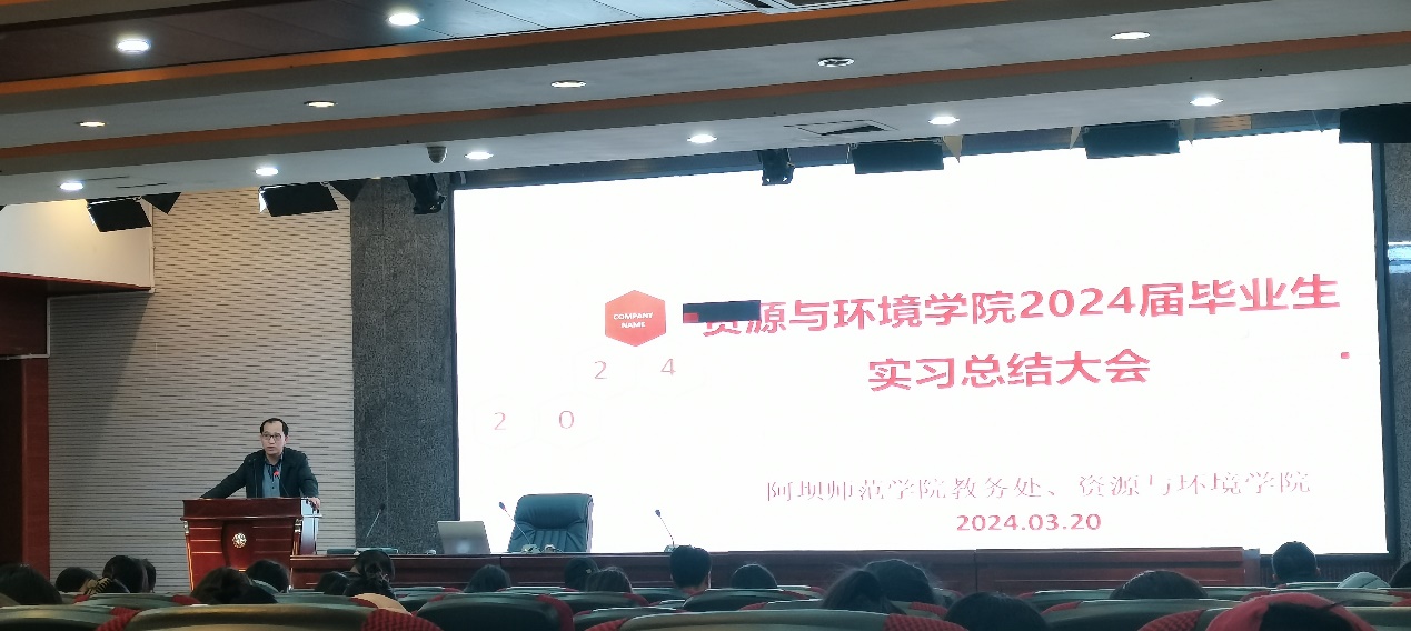 【本网讯】进一步提升实践教学质量,提高学生专业素质和实践能力,同时也为下一届毕业生的学习生活提供指导、借鉴,我院于2024年3月20日在学术报告厅举办资源与环境学院2024届毕业生实习总结分享大会。教务处副处长侯雨乐、资源与环境学院党委书记余列、副院长廖光萍、副院长冯琳、2020级、2021级班导师以及实习带队老师出席会议。会议由2023级生物科学代雅馨同学主持。