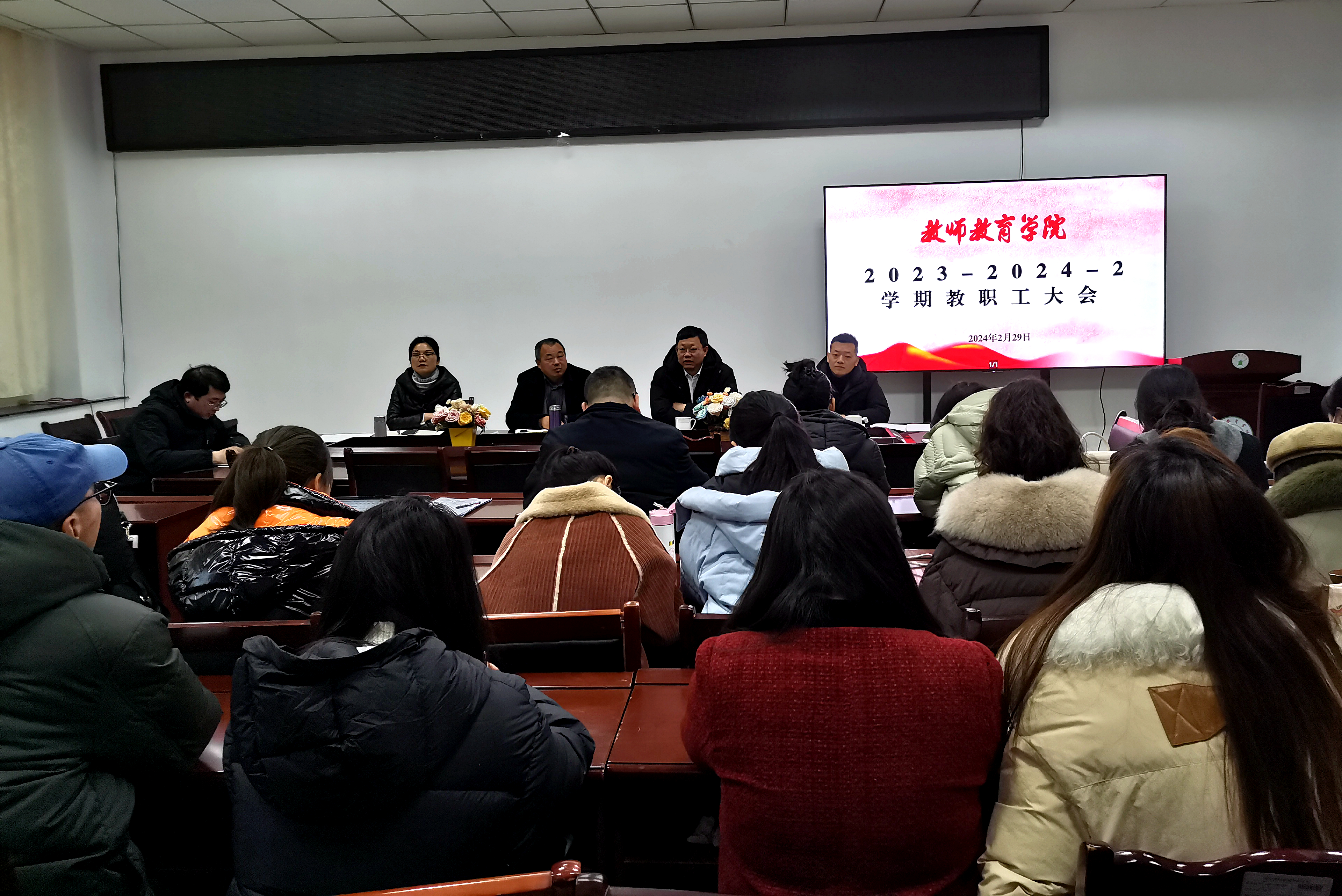 【教院讯】为深入贯彻党的二十大精神和习近平总书记关于教育的重要指示精神,围绕学校实现高质量跨越式发展,建设师范教育创新发展高地的新要求,2月29日下午,教师教育学院在树人楼B305会议室召开2023-2024-2学期学院高质量发展研讨会。党委副书记、校长向武出席会议,学院全体教职工参加了会议,会议由党委书记邓志光主持。
