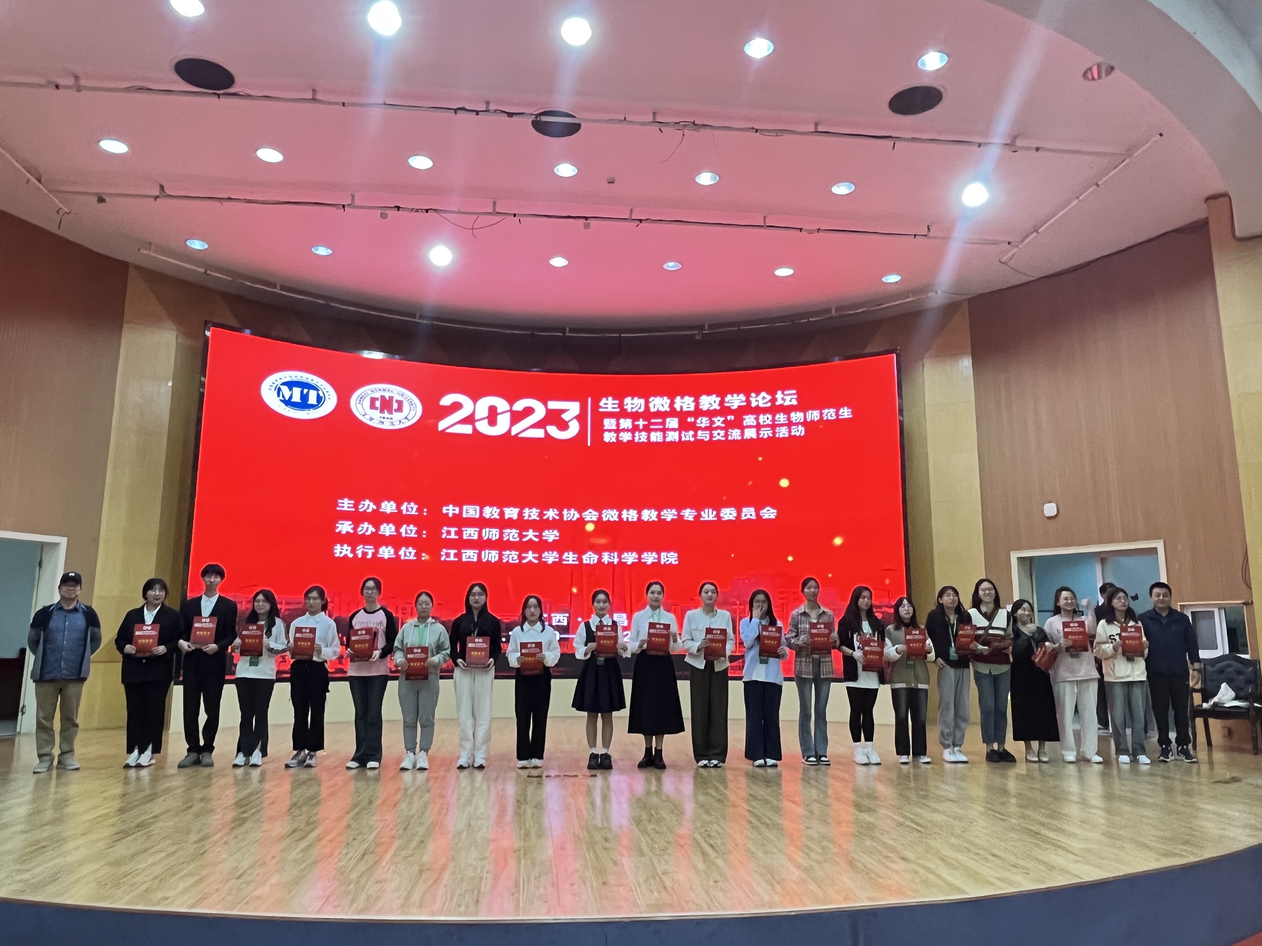 【本网讯】近日,由中国教育技术协会微格教学专业委员会主办的第十二届“华文”高校生物师范生教学技能测试与交流展示活动在江西师范大学成功举行。此次活动吸引了来自全国各地的生物师范生参赛,阿坝师范学院资源与环境学院的生物科学专业同学凭借出色的表现,取得了骄人的成绩。